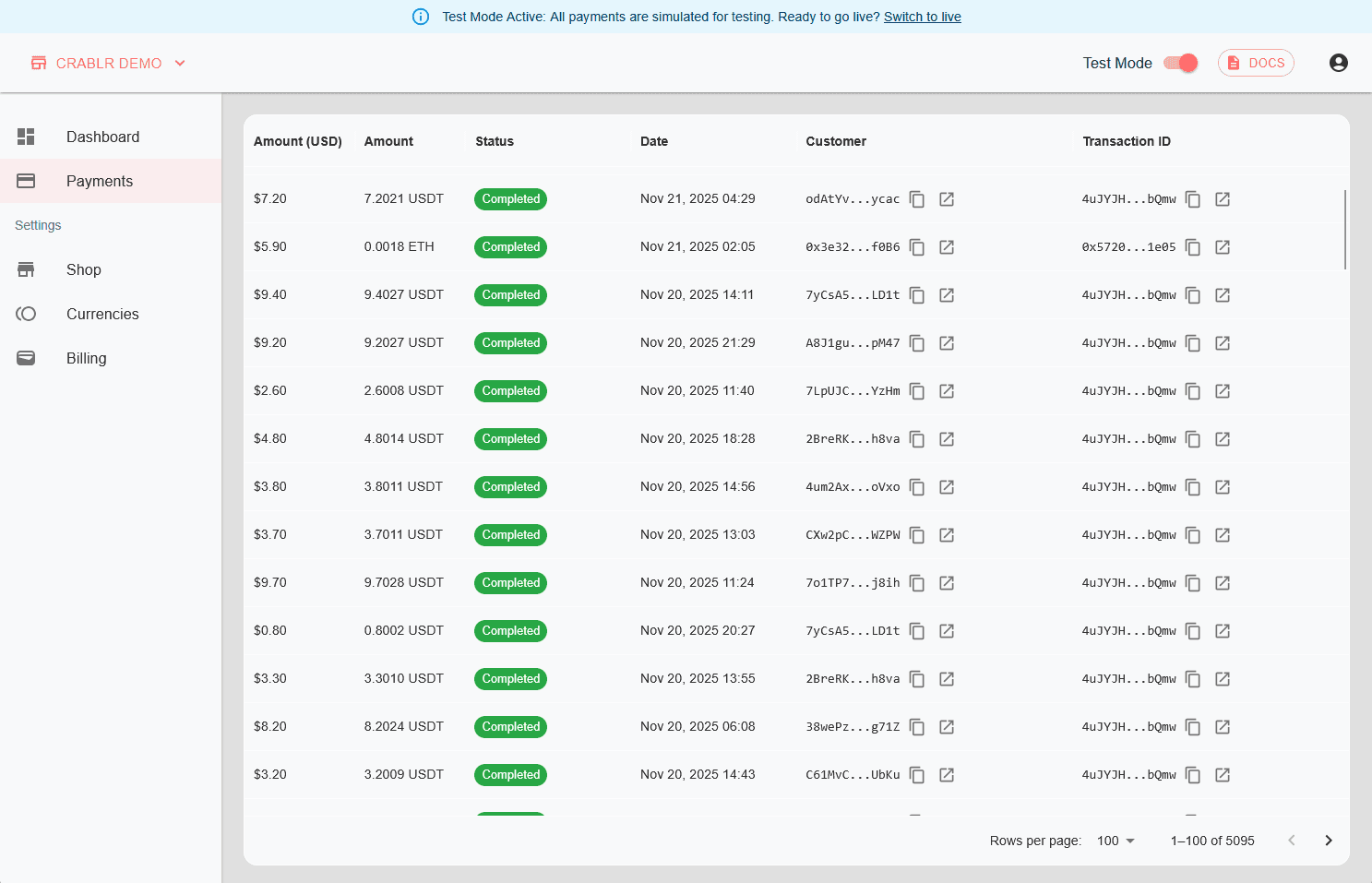 Whether you're a developer or merchant, Crablr makes accepting crypto payments straightforward and reliable.