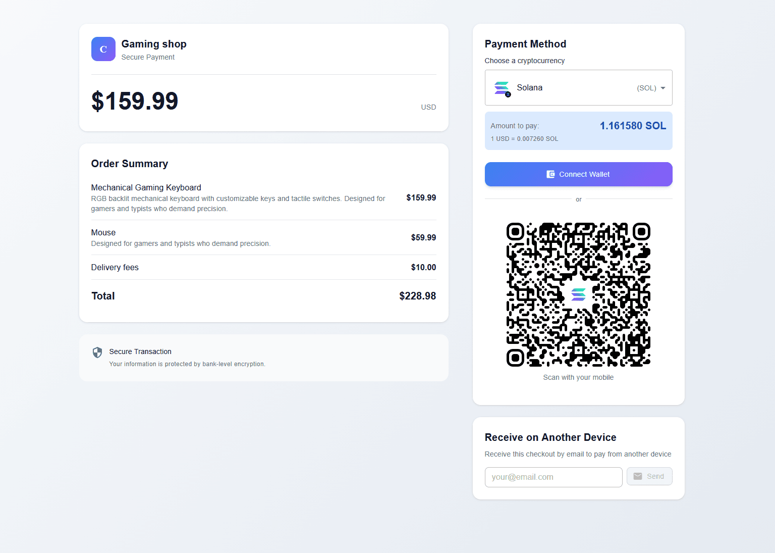 Your customers connect with their favorite wallet on any device and complete payment in seconds.